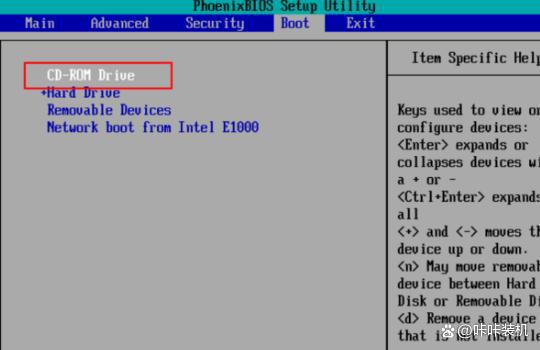使用方向键选择“Boot”选项,然后选择“CD-ROM Drive”或“USB Drive”选项,将其设置为启动优先。