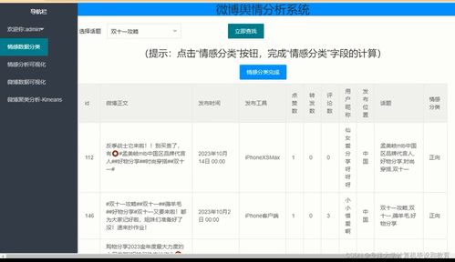 情感分析:利用自然语言处理技术,对文本数据进行情感倾向分析。
