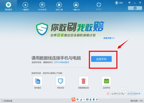 2. 连接手机与电脑:使用数据线将手机连接到电脑上,确保手机进入特定的刷机模式。不同品牌手机的进入刷机模式的方式不同,你可以通过网络搜索找到对应品牌和机型的进入方法。