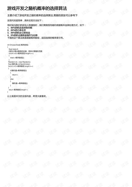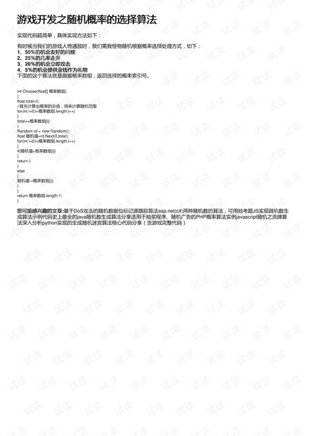 首先,让我们来了解一下什么是概率算法。简单来说,概率算法就是通过数学计算,来决定游戏中某些事件发生的可能性大小。比如,游戏中某个角色升级后获得某种技能的概率,或者是抽奖活动中获得稀有道具的概率,都是通过概率算法来计算的。