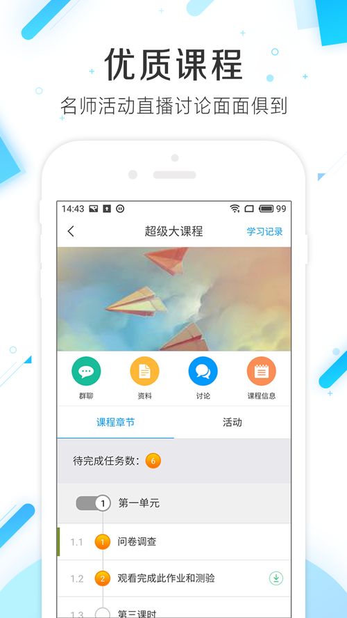 学习通,这个名字听起来就充满了学习的气息。它是一款专为学习打造的移动应用,集成了课程学习、资料查询、互动交流等功能,让你随时随地都能沉浸在知识的海洋中。