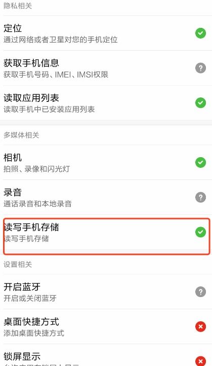 进入应用权限设置界面,找到读取权限选项。