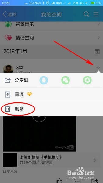 3. 点击动态下方的三个点,出现一个菜单。